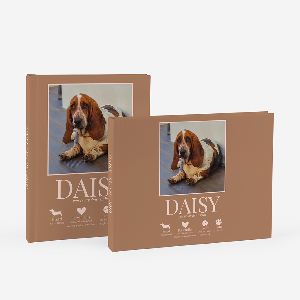 A capa rígida em cartão duro oferece proteção adicional e um acabamento elegante ao teu álbum.